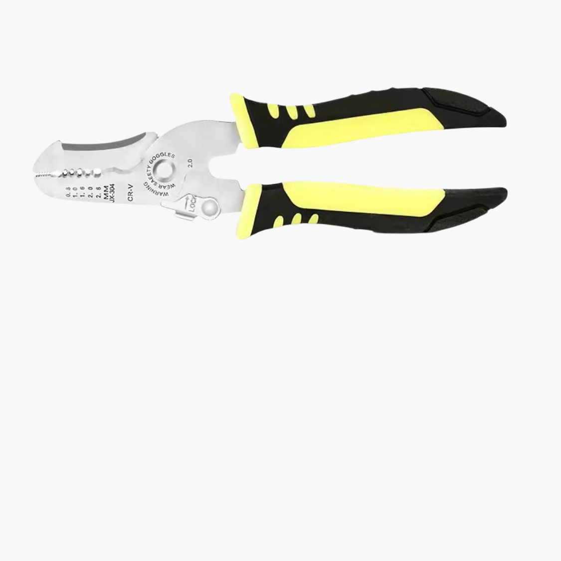 7-in-1 wire stripping pliers offer wire cutting, crimping, stripping, shearing, and bolt cutting in one tool. Durable steel construction. Ergonomic handle. Suitable for electrical, automotive, and DIY projects.
