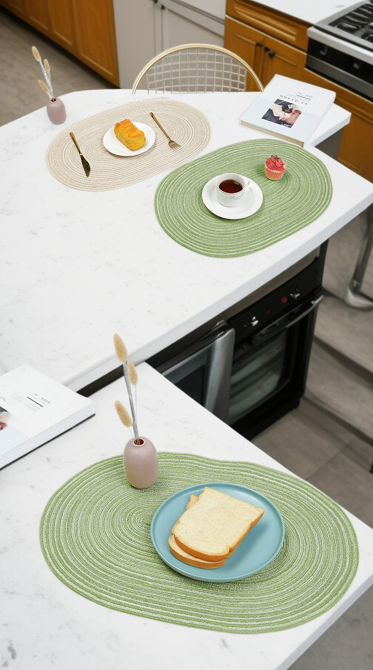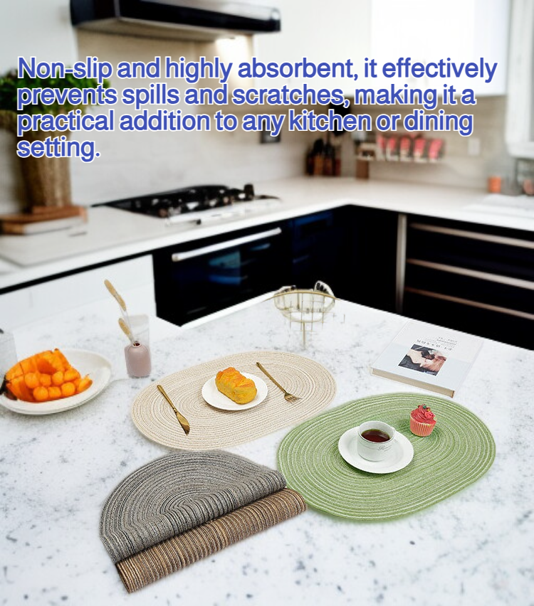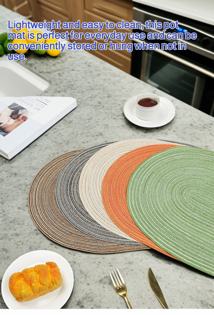 ● Crafted from high-quality Japanese-style ramie, this heat-resistant pot mat provides excellent protection for your table surfaces against hot cookware and dishes. ● The elegant woven design adds a touch of minimalist sophistication to your dining area while ensuring durability and long-lasting use. ● Lightweight and easy to clean, this pot mat is perfect for everyday use and can be conveniently stored or hung when not in use. ● Non-slip and highly absorbent, it effectively prevents spills and scratches, making it a practical addition to any kitchen or dining setting. ● Environmentally friendly and naturally antibacterial, this ramie mat is a safe, stylish, and sustainable choice for your home.